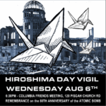 Hiroshima vigil on 80th anniversary of the bombing, August 6, 2025, Columbia, SC, 6:30 p.m.